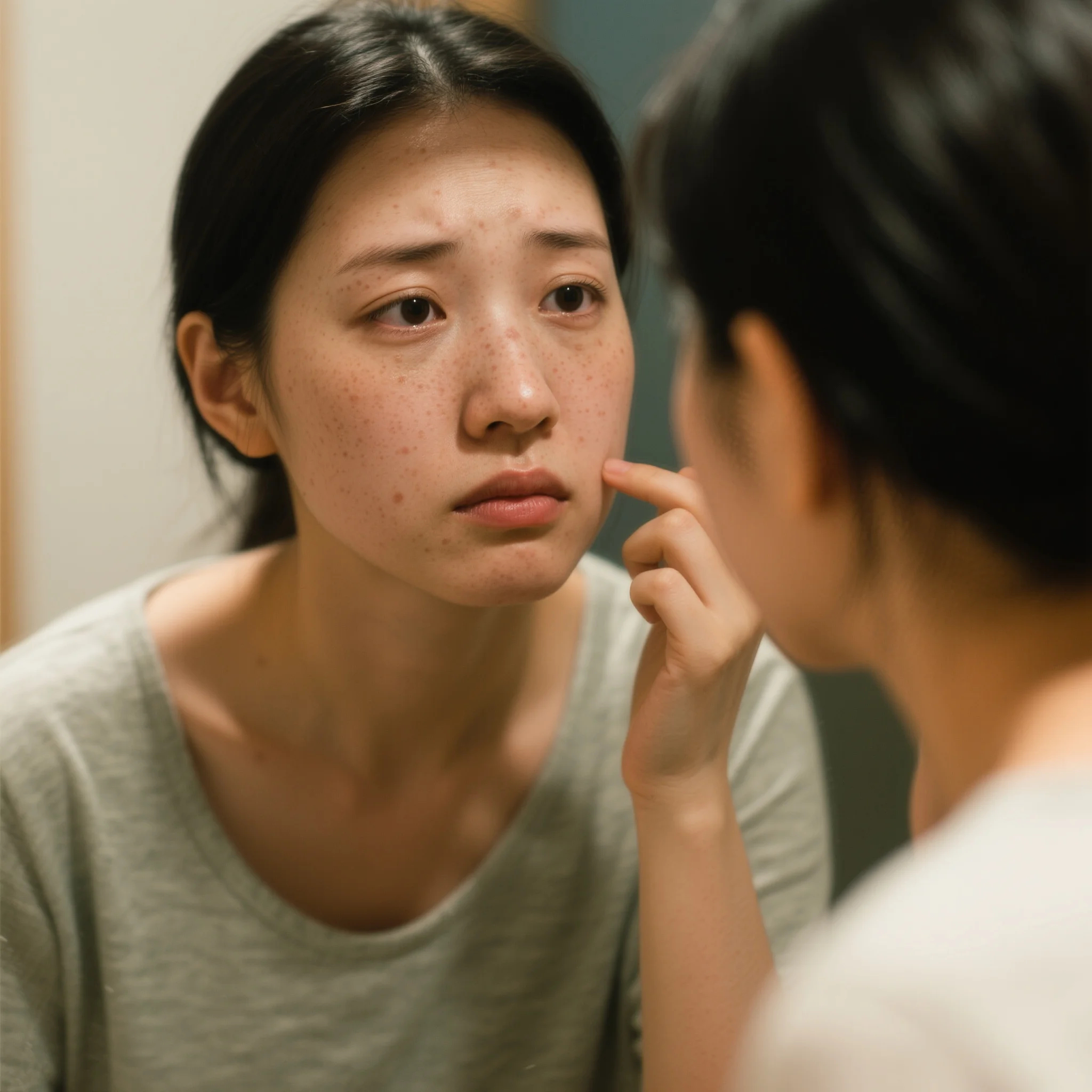 | 膚質改變 | 皮膚質地變粗糙,毛孔明顯且缺乏彈性 |