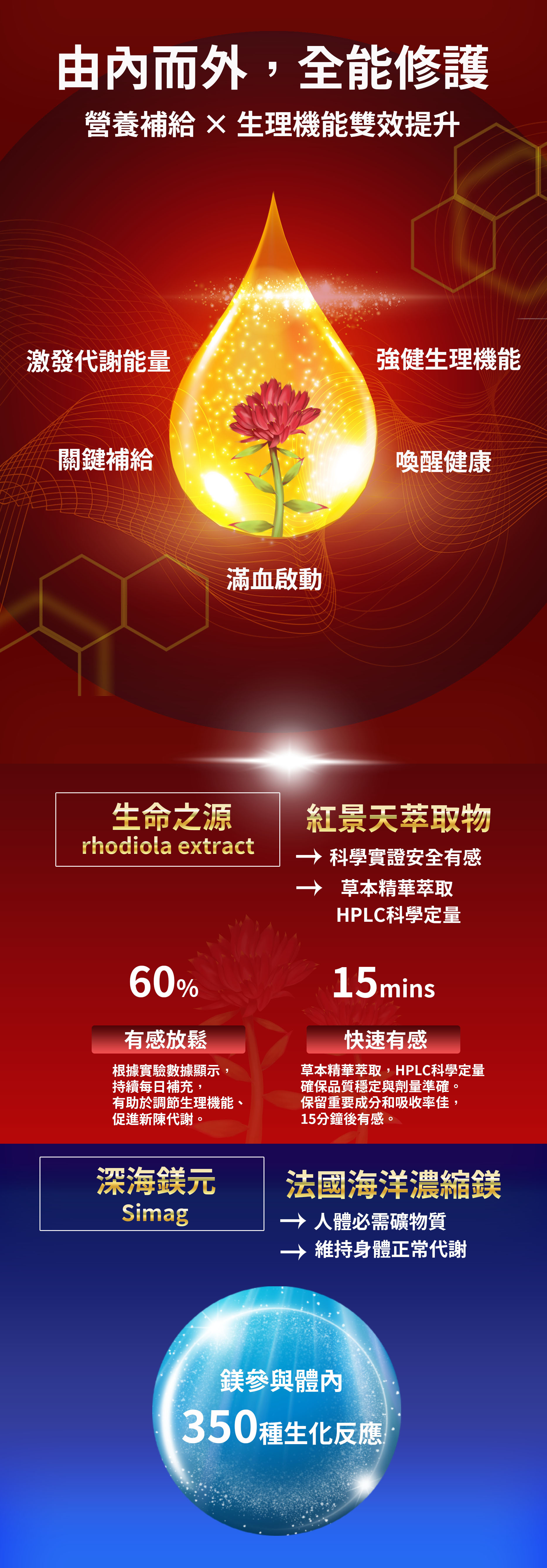 ✓精選上等紅景天,科學定量3%紅景天苷(Salidroside)