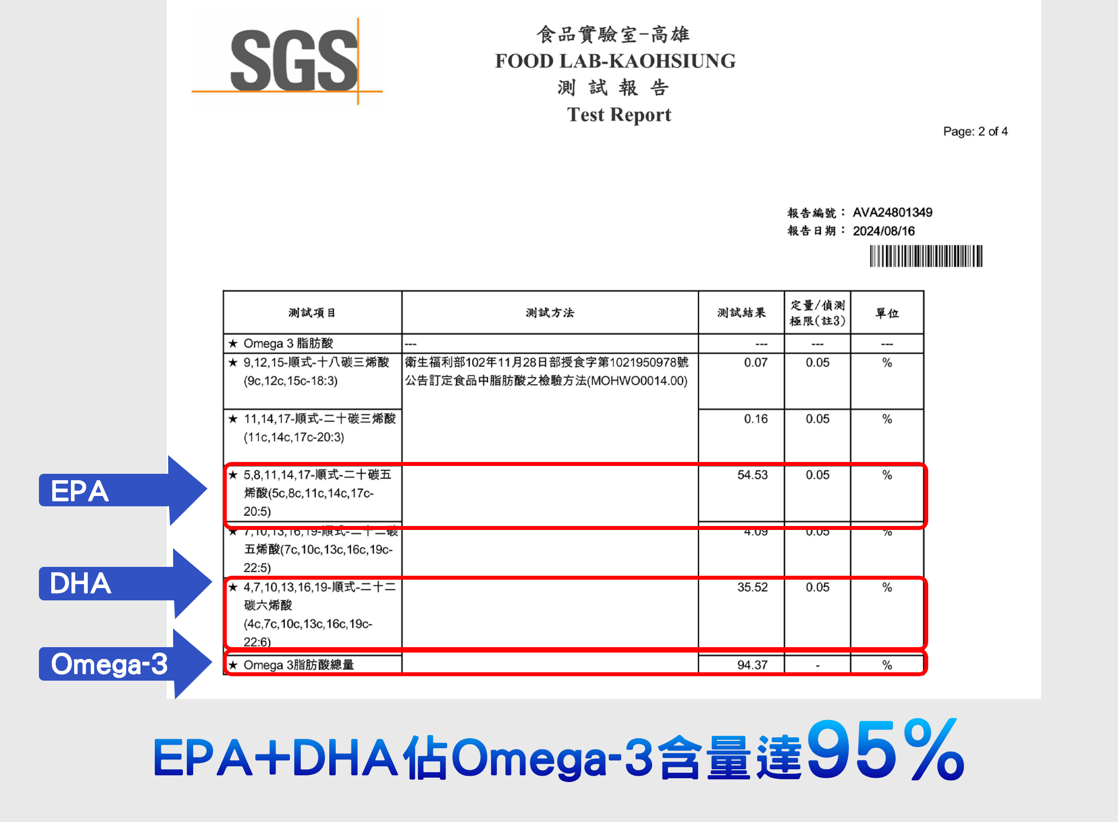 ✓最符合亞洲人的魚油Omega 3 濃度94% (EPA 55% +DHA 36% )